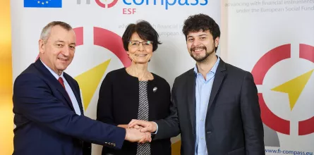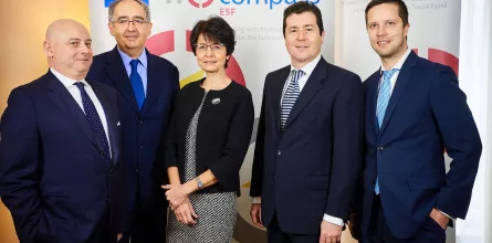 Mr Bruno Robino, Head of fi-compass, European Investment Bank; Mr Jader Canè, DG Employment, Social Affairs and Inclusion, European Commission; Ms Marianne Thyssen, European Commissioner for Employment, Social Affairs, Skills and Labour Mobility; Mr Andrea Da Pozzo, DG Employment, Social Affairs and Inclusion, European Commission; Mr Ando Siitam, European Investment Bank